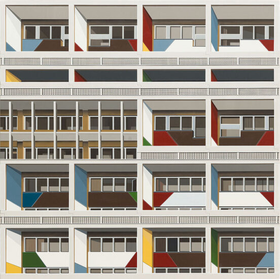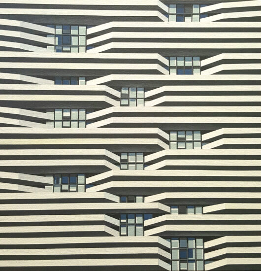 Em 2008, a convite de um grande amigo, Sérgio Carvalho, fui a Brasília pela primeira vez e fiquei muito impressionado com a relação espaço e luz na arquitetura. Lembro que parei em frente ao prédio do anexo da Câmara dos Deputados e fiquei por horas a fotografá-lo. Sua frente inteira de janelas com brise-soleil me impressionou. O sol das quatro horas da tarde ao se refletir nos brises multiplicava suas formas e tonalidades. Fiquei a imaginar que seria como uma sinfonia infinita de composições com os mais variados tons a cada abrir e fechar de janelas todos os dias. Esta foi a minha primeira aproximação da geometria. Levei dois anos para assumi-la. Cheguei a pensar em fotografia, mas não estaria trazendo nada de novo ao meu trabalho com isso. Na pintura, parecia-me impossível trabalhar com tantas retas. Depois de conversas com amigos, Valdirlei Nunes, Rubens Mano e Carlito Contini, resolvi arriscar e tentar o desafio. Como consequência disso, a partir de 2010, meu trabalho sofreu mais uma virada. Embora permanecendo no figurativo, o desafio de então era compor uma geometria abstrata, isto é, trabalhar com a geometria sem utilizá-la para fins de representação.