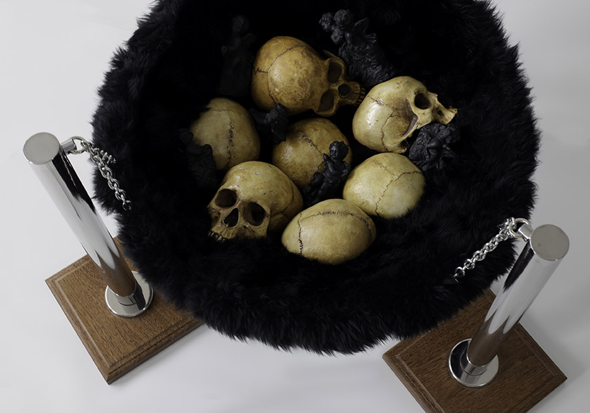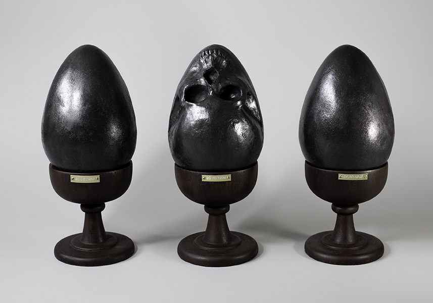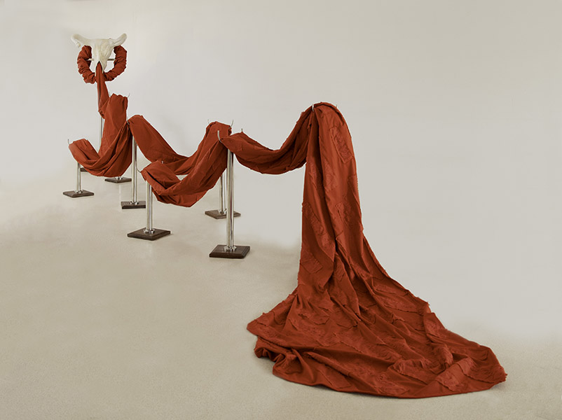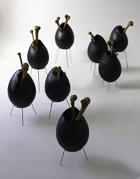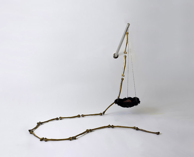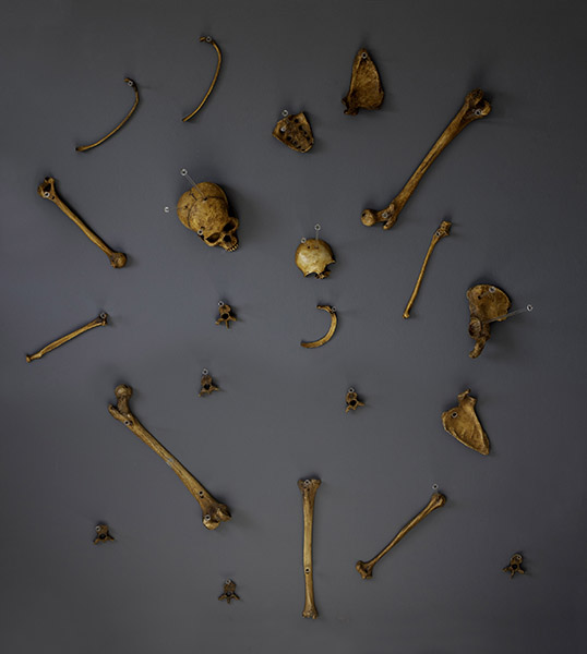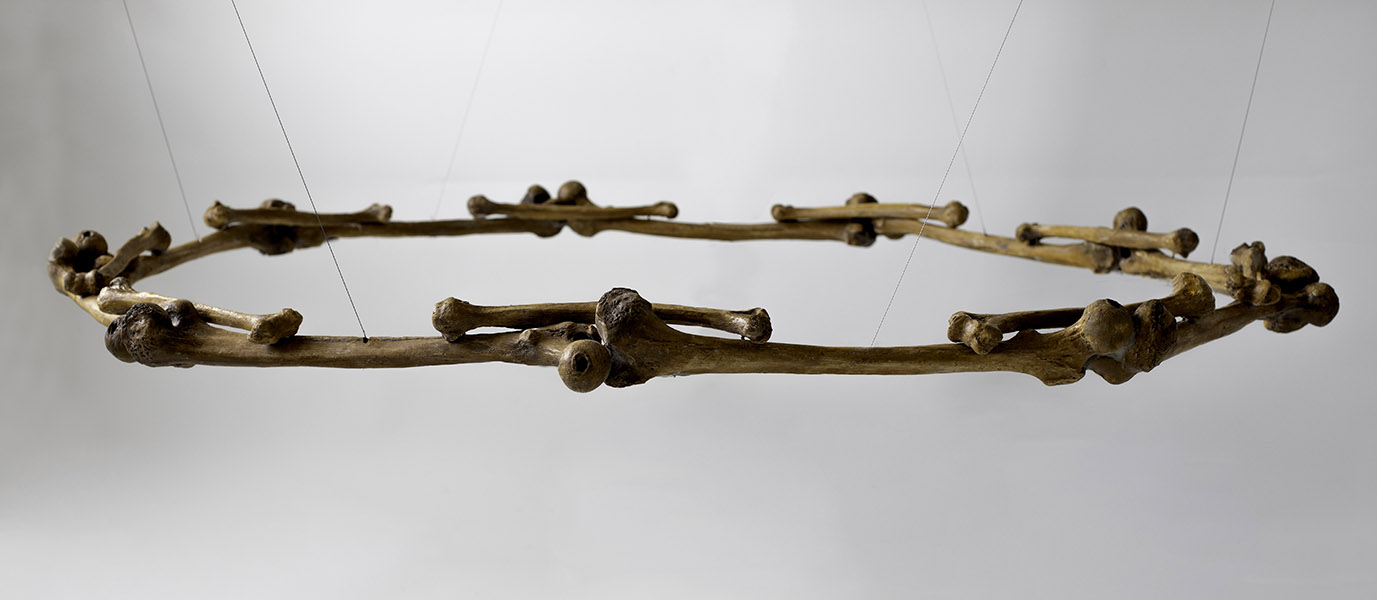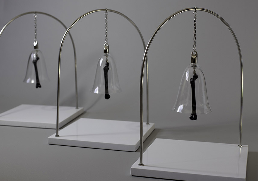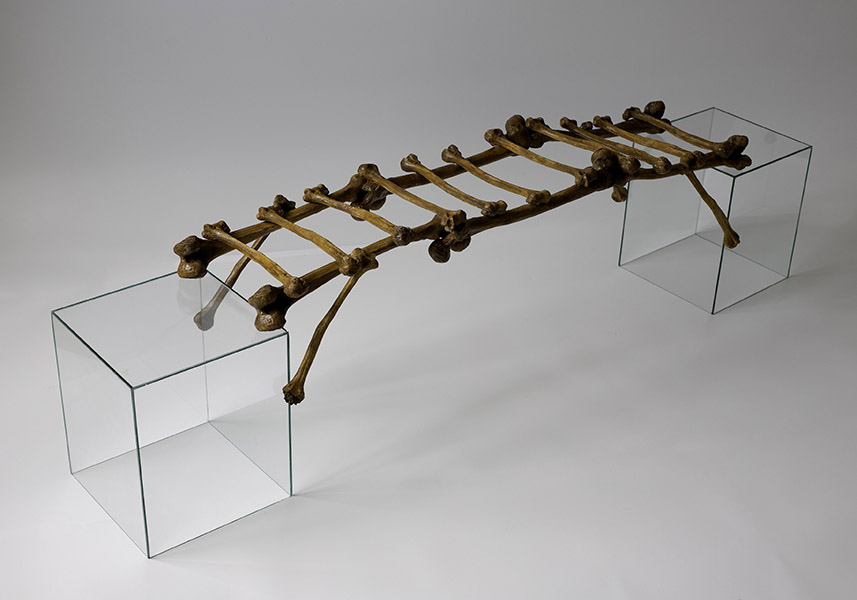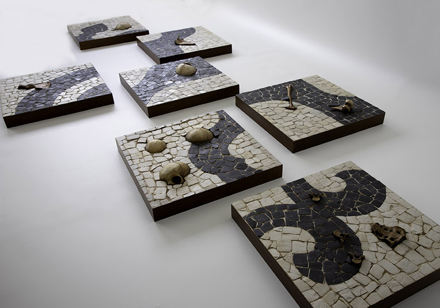 Nesta produção inédita, o artista, conhecido primordialmente por sua pintura sobre tela, extrapola os parâmetros usuais e expande a representatividade além do espaço bidimensional do suporte convencional. Surgem objetos e instalações compostos de elementos alusivos a um trabalho arqueológico a resgatar e recompor partes individuais para a compreensão de um todo. Nesse processo de produção, a percepção do tempo é presente, intrínseca e visível, pois representa a linearidade temporal, necessária para moldar a compreensão do passado, presente e futuro, desafio que a tríade concebida para “Trilha dos ossos” propõe.