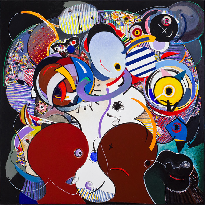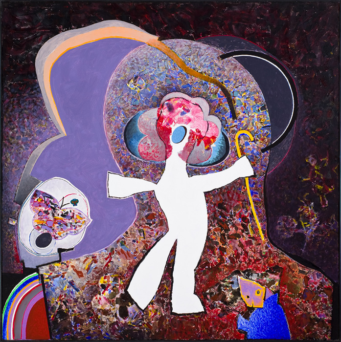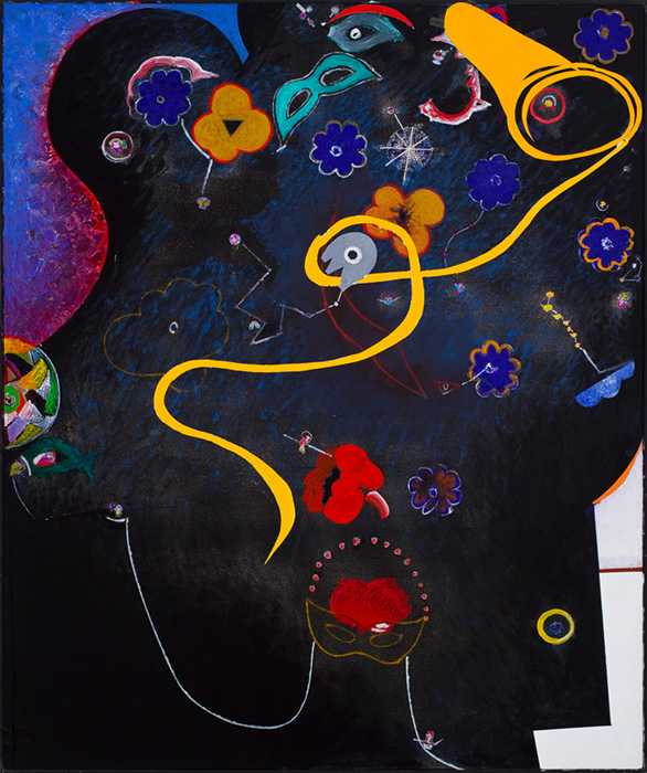 As figuras aparecem não por acaso, elas existem no inconsciente do artista. Uma festa de referências infantis: jogos, máscaras, palhaço, maestro, fantasmas que falam de um passado não resolvido. A vida parece uma brincadeira, um instante que passa e deixa no ar um riso ou um gemido. Com toda sua autonomia pictórica, é impossível abstrair dessas pinturas as conotações fora do mundo da arte, mas elas não são pontos de apoio, são motivos para o sujeito experimentar e realizar o desejo de pintar. A subjetividade que emerge do fundo da tela, o que foi recalcado fica em segundo plano, os efeitos pictóricos falam mais alto.