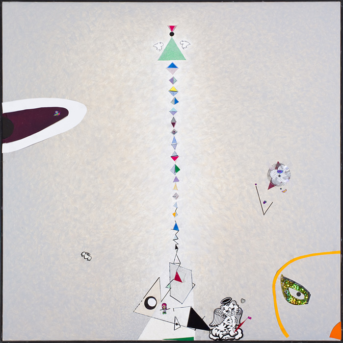 Sua extraordinária serie de novas pinturas coloca-o diante da matéria ordinária de coisas curiosas que assimila ao cola-las sobre a tela, dando-lhes leveza e nobreza, mágica ao simples, criando uma complexa originalidade construtiva que nos põe em poder de suspensão e espanto.