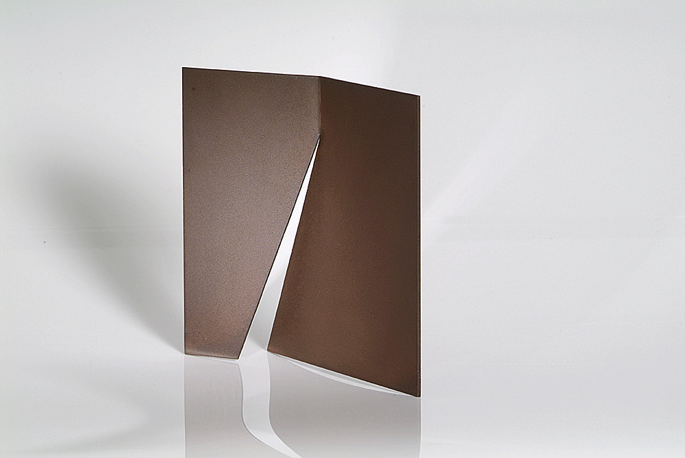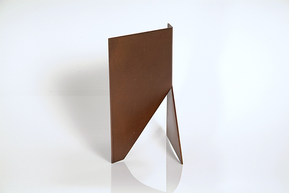 verdade, todas as obras que Amilcar produziu, desde aquele remoto momento (1958?/1959?) são variações daquela primeira obra. A placa muda de forma – quadrada, circular, paralelogrâmica – , muda de proporção, muda de espessura, mas como consequência do mesmo recurso expressivo: o corte e a dobra. É verdade que esse procedimento se enriquece ao longo dos anos com novos elementos que, no entanto, não alteram sua natureza, mas antes a acentuam, como o uso da placa de ferro espessa, de grande formato, que, por ser espessa e grande, valoriza tanto o corte quanto a dobra. Como se vê, é a superfície que fala conforme suas qualidades materiais, se menos ou maior, se mais espessa ou mais fina.