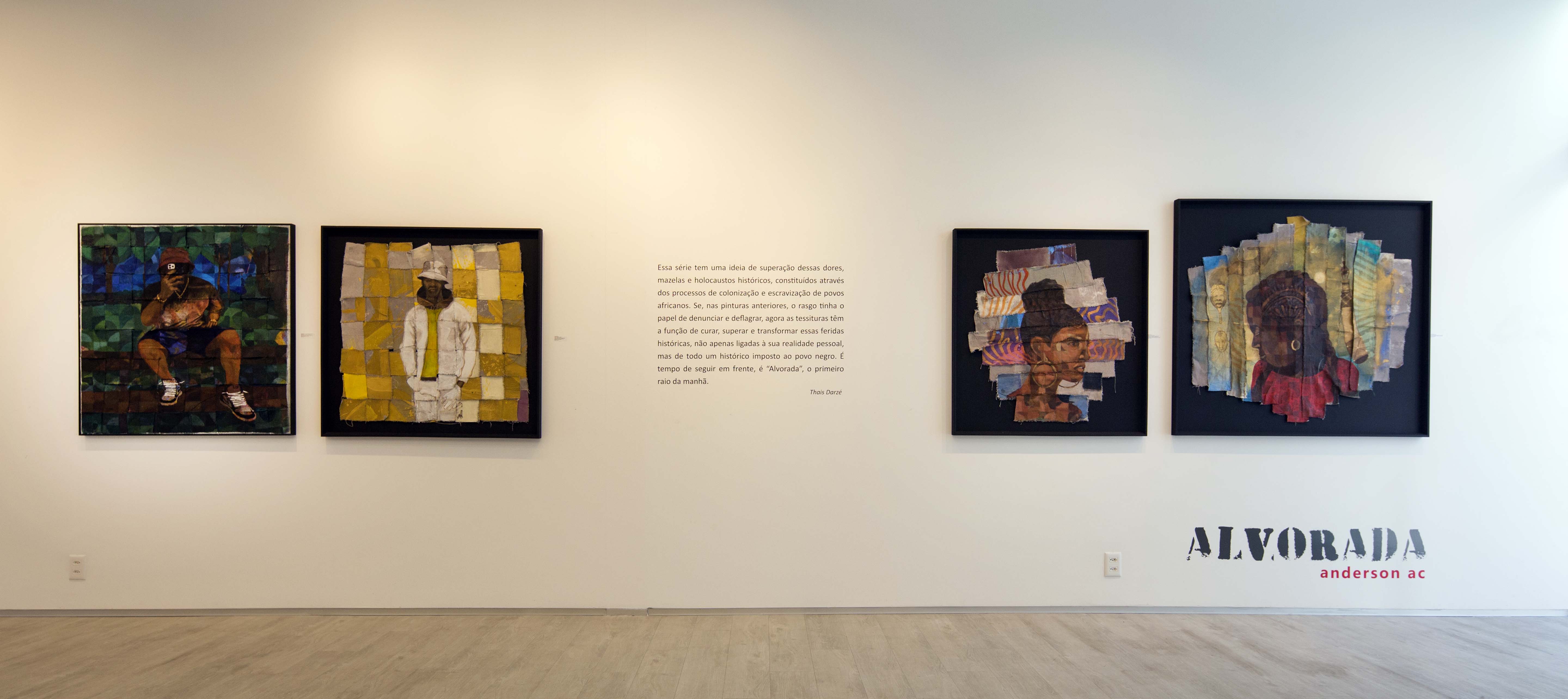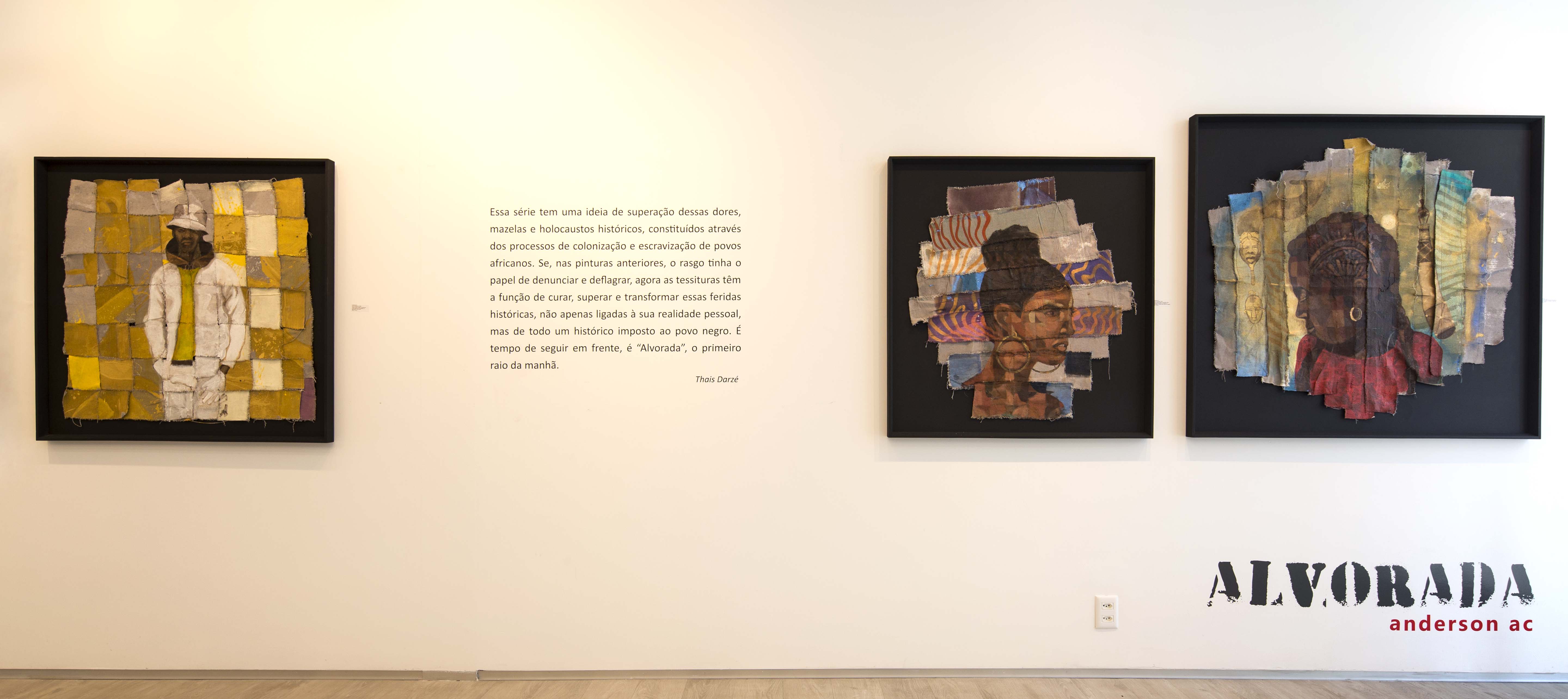 A primeira claridade da manhã que desponta no horizonte, aqueles primeiros instantes que anunciam a chegada de um novo dia, é um novo ciclo num universo de possibilidades que se renovam e se apresentam todos os dias a cada manhã. No contexto religioso afro-brasileiro é também o horário que se iniciam diversas cerimônias nas comunidades de terreiro. É justamente por essa ótica que o artista plástico Anderson Cunha escolheu “Alvorada” como título de sua exposição, que para ele significa um processo de renovação dentro de sua própria obra.