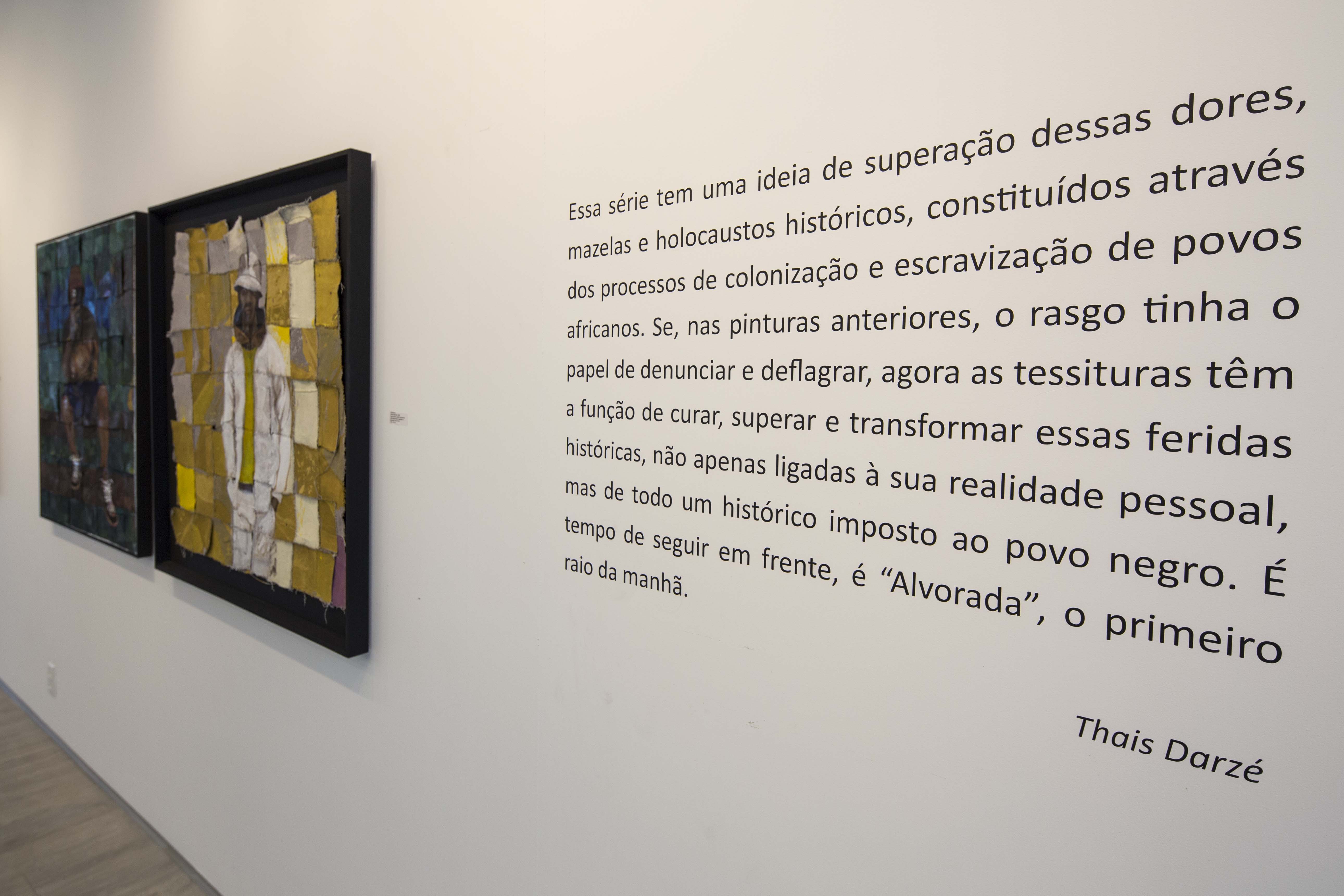 Ainda que elementos de sua pesquisa artística de mais de uma década estejam presentes de forma evidente (os códigos visuais da arte do grafitti, a cultural africana em Salvador como matriz e toda a simbologia religiosa e social), “Tessitura da Alvorada” é, a um só tempo, um prosseguimento e uma radical atitude de rompimento em e com a trajetória do artista: o que vemos não são pinturas – em seu sentido mais elementar – , mas um outro objeto, algo que pede uma outra definição, uma outra categoria na qual as imagens pintadas são apenas uma camada inicial em nome do próprio entendimento da obra: no lugar da pintura, um objeto pictórico, ativo, em permanente ação diante de suas próprias circunstâncias.