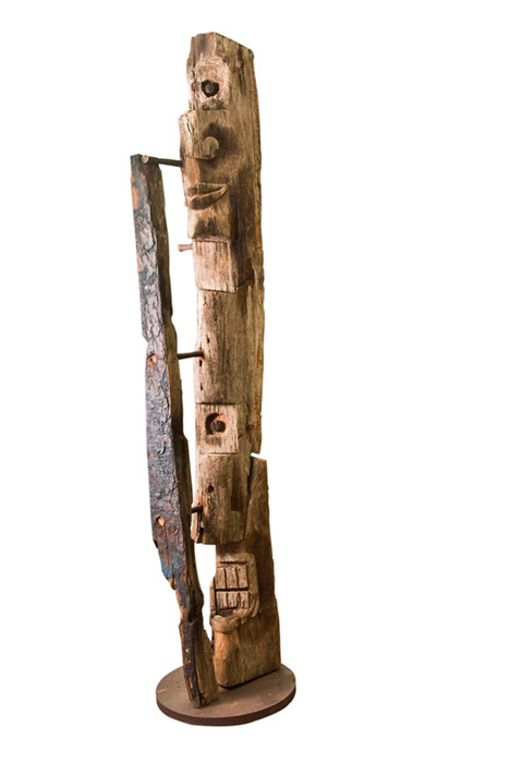 Estar em Maragogipe, agora por questões de destino, ou seria de acaso, se acaso existe, reencontra-se com a terra de nascimento de seu pai. Ao aportar chega ao estaleiro do Mestre Dego, remanescente construtor e restaurador. E neste local, muita, mas muita madeira de velhas embarcações, restos de saveiros. Perplexo e apaixonado pelo que vê decide naquele preciso momento em recolher muitas daquelas peças e com elas dar início por meio de sua arte buscar reviver uma história – só através da arte se pode efetivar alertas para que todos acreditem uma realidade -, e que ao mergulhar neste tema pudesse objetivar um novo sentido para tudo aquilo que enconrtara, chamando a imediata atenção para o fim que estavam destinados os saveiros – o de carvão.
