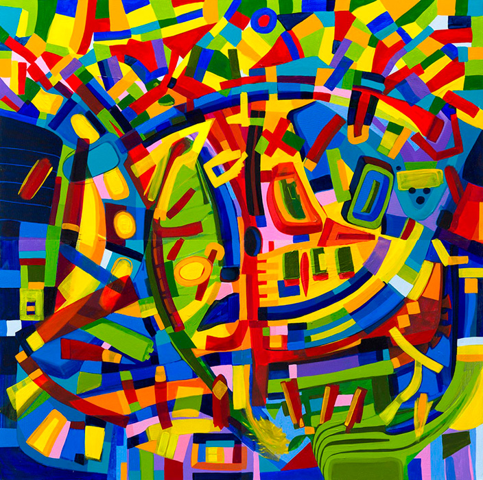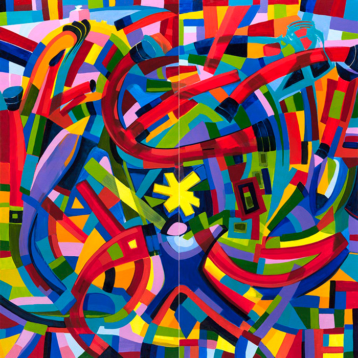 Neste conjunto de grandes telas, vemos o artista Bel Borba no exercício pleno da pintura. São trabalhos que clarificam uma intencionalidade pela vibração cromática, espécie celebração do prazer pelos cromatismos vibrantes conduzidos pelo gesto calculado, notações que se abrem à abstração, mas não nos furtam em perceber aqui, e ali, vestígios de signos que delatam a presença forte do urbano. Em algumas destas pinturas, percebemos claramente cidades sugeridas por uma visão suspensa, aérea, e codifica com suas dinâmicas de gestos em velocidade, a percepção do movimento, do ruído, da expansão que se dá como um leit motifnum espaço que é o urbano onde as ocorrências se repetem de formas diferentes. Pinturas que parecem renovadas para quem conhece a obra deste artista, que além da alegria que parece gritar, grifa a hegemonia sobre uma técnica que parece conferir ao artista a condição de estar presente na pintura, tanto quanto presente como artista nas cidades que reconhecem sua obra expandida, por suas variáveis expressivas que lhe conferem o reconhecimento mútuo de afetos entre presentes.