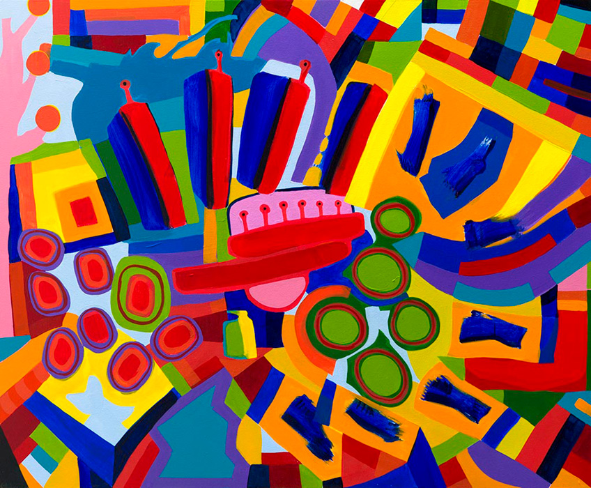 Agora, de volta à Bahia, Bel Borba nos surpreende com mais uma reviravolta. Embora sempre tenha deixado claro que nunca se distanciou da pintura, nos surge com esta mostra na Paulo Darzé Galeria de Arte com um conjunto de trabalhos de grandes dimensões, onde, parecendo descansado de seus labores por vários países do mundo em 2013, se volta para o que parece uma celebração.