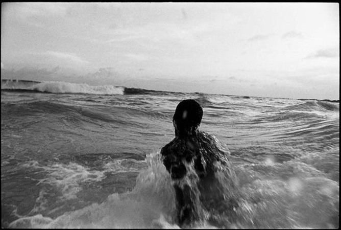 “Debaixo das sombras escorre uma sombra mais densa. Ela se move a procura do mágico. Não mágico prestidigitador, aquele que engana, mas o mágico que é mistério. Atrás das sombras existe uma profunda magia. Movimento de bicho, elo perdido, gasto no sonho de um dormir provocado, derrubado, induzido por desespero certeiro. Corpos caídos, por cima, a sombra, o negror. Real, material-prima para quem o sabe moldar a imagem de seu sentir e, assim, retratar sua busca interna. O mistério do próprio eu transmitido nas imagens. A magia do que procuramos em nós através desse lado de fora que enganosamente chamam de realidade. A faca que penteia deixa ver a cicatriz que não é dor, apenas tensão do que esta por vir. Por debaixo das sombras esta não vontade de mostrar, mas aquela de deixar sonhar, de soltar a imaginação. Aquela silhueta no mar, afinal, estará se envolvendo em espumas…?”.