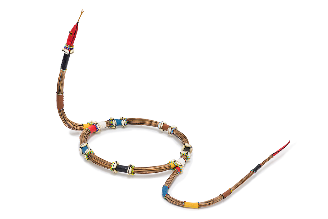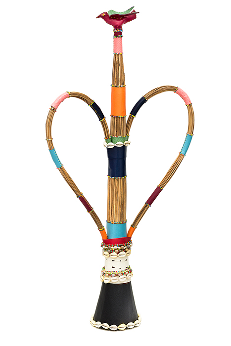 Outros elementos materiais que constituem as obras de Mestre Didi, também herdeiros das ferramentas mágicas, são os feixes de nervuras de palmeira, que simbolizam a representação coletiva dos ancestrais, o couro, que faz as uniões, e os cauris (búzios) que pertencem à simbologia de Nanã, e são relacionados aos ancestrais. Sua disposição, em cruz, “espinha de peixe”, ou lado a lado, também tem significados; colocados dois a dois, em pares opostos, por exemplo, referem-se aos ascendentes e descendentes, passado e futuro.
